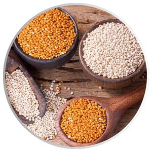 Nutritious grains sourced sustainably, including various millets and high-quality quinoa.